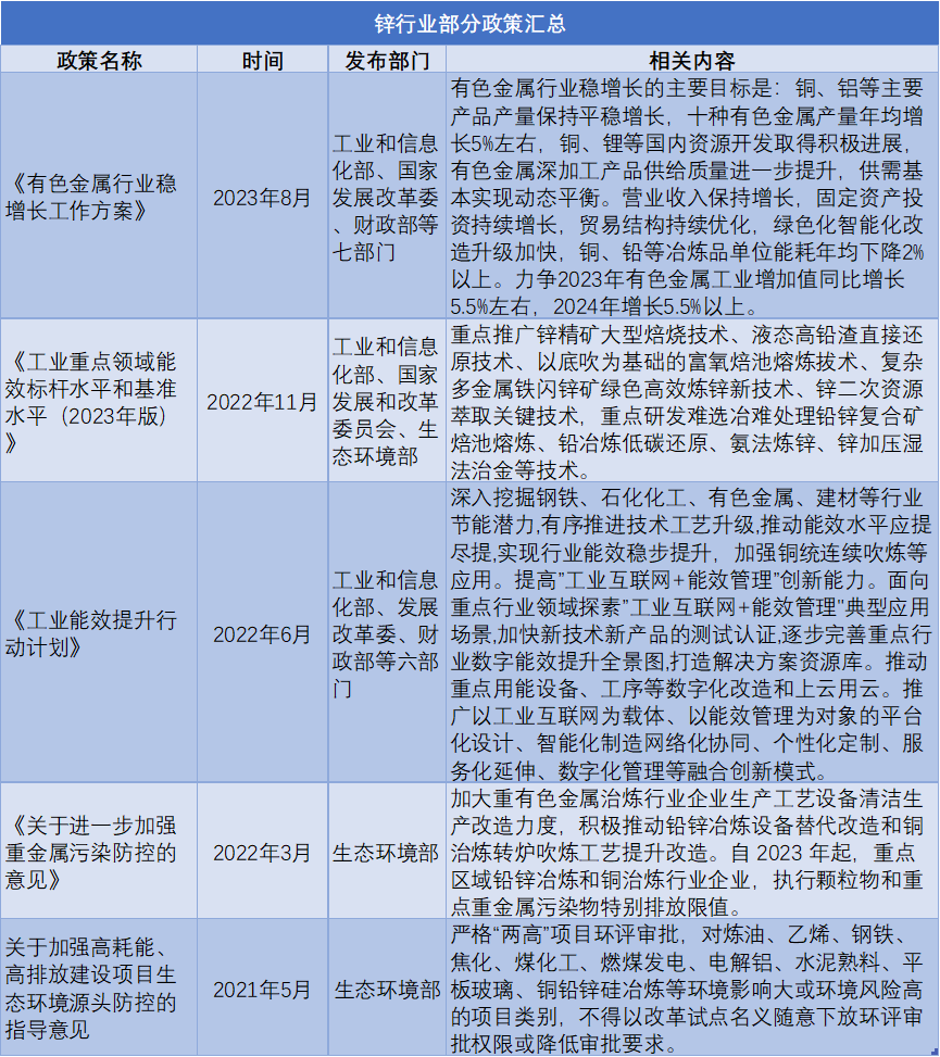 從國家產(chǎn)業(yè)政策方面來說,在雙碳背景下,引導(dǎo)鋅產(chǎn)業(yè)健康和諧發(fā)展是國家政策一直努力的方向。中華人民共和國工業(yè)和信息化部于2020年2月28日發(fā)布的《鉛鋅行業(yè)根據(jù)中華人民共和國工業(yè)和信息化部于2020年2月28日發(fā)布的《鉛鋅行業(yè)規(guī)范條件》(中華人民共和國工業(yè)和信息化部公告2020年第7號)等多項政策都在引導(dǎo)鋅產(chǎn)業(yè)健康發(fā)展。