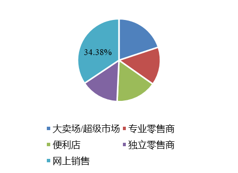 中國市場來看主要下游渠道與全球市場下游渠道相同,但得益于中國互聯(lián)網(wǎng)電商的高速發(fā)展使中國冷凍調(diào)理食品主要的銷售渠道是網(wǎng)上銷售,占比達到34.38%。