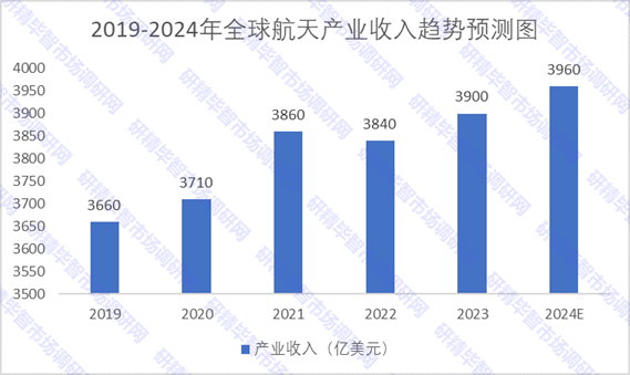 隨著航天技術的不斷發(fā)展,全球航天產業(yè)收入將持續(xù)增加。根據調研報告顯示,2023年全球航天產業(yè)收入約為3900億美元,較2022年增加60億美元。研精畢智分析師預測,2024年全球航天產業(yè)收入將達3960億美元。