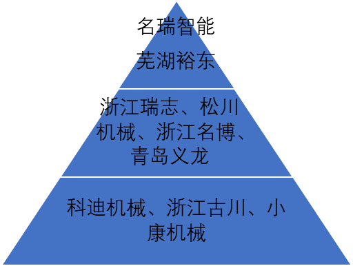 中國給袋式包裝行業(yè)競爭格局中第一梯隊企業(yè)給袋式包裝機營收規(guī)模較大,在4億元以上,與第二梯隊拉開較大差距,第一梯隊的代表企業(yè)有名瑞智能、蕪湖裕東;第二梯隊企業(yè)營收規(guī)模處于中等水平,在0.5至4億元之間,具有一定產(chǎn)品及技術(shù)優(yōu)勢,代表企業(yè)有浙江瑞志、松川機械等;第三梯隊企業(yè)的營收規(guī)模較小,在0.5億一下,但仍具有一定的市場認(rèn)可度,代表企業(yè)有科迪機械、浙江古川。