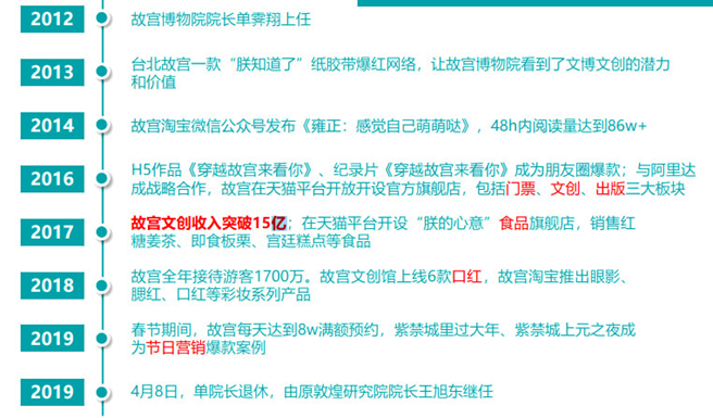 2012-2019年,是故宮文創(chuàng)爆紅到持續(xù)出圈的黃金七年。隨著文創(chuàng)種類的豐富及品質(zhì)的提升,故宮文創(chuàng)的影響力不斷提高,逐漸成為故宮對(duì)外進(jìn)行文化傳播的重要載體。