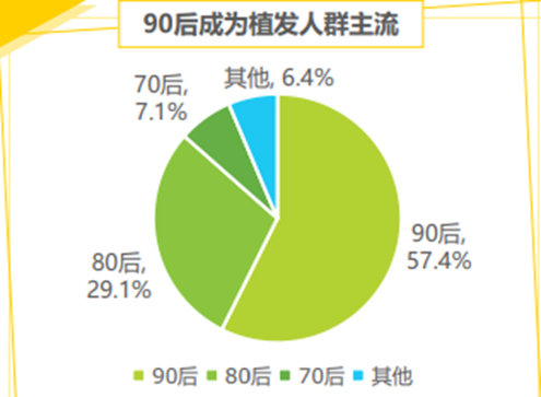 隨著消費者認知和接受水平的不斷提升,其對于植發(fā)的需求也在不斷增加,這當中,年輕人群受教育程度普遍較高,具有一定的消 費和支付能力,并且對外貌關注度極高,加上年輕消費人群面臨求職、求偶等人生重大事件,更加期待植發(fā)帶來工作和生活質量的 提升,因此90后已經(jīng)逐漸成為植發(fā)人群主流。在性別畫像方面,男性的剛需型消費成為植發(fā)發(fā)展的主要動力,女性則主要為提升形 象,但隨著消費者對美的追求不斷加深,植發(fā)市場必將迎來巨額增量。