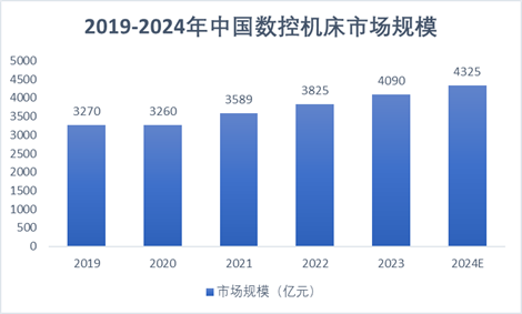 數(shù)控機(jī)床行業(yè)在國家政策的支持以及企業(yè)的不斷創(chuàng)新下,呈現(xiàn)出快速發(fā)展的態(tài)勢,行業(yè)規(guī)模持續(xù)擴(kuò)大,整體運(yùn)行狀況穩(wěn)中向好。根據(jù)研究報(bào)告顯示,2023年中國數(shù)控機(jī)床市場規(guī)模達(dá)到約4090億元,近五年年均復(fù)合增長率達(dá)5.75%。預(yù)計(jì)2024年行業(yè)市場規(guī)模將達(dá)到4325億元。