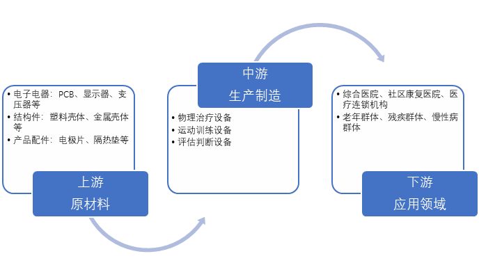 中國康復醫(yī)療器械產業(yè)鏈可以分為上游、中游和下游三個主要部分。上游主要是原材料供應,包括電子電器類、結構件類、產品配件類、包裝材料等。這些原材料是康復醫(yī)療器械生產的基礎,涉及到多種行業(yè),如電子制造、機械制造、生物化學、材料等。中游為康復醫(yī)療器械的生產環(huán)節(jié),主要包括物理治療設備、運動訓練設備、評估判斷設備等。這一環(huán)節(jié)涉及到研發(fā)、制造、銷售及相關服務,是產業(yè)鏈中的核心部分。下游則是應用領域,包括綜合醫(yī)院、社區(qū)康復醫(yī)院、康復醫(yī)院、醫(yī)藥連鎖機構、養(yǎng)老院及個人消費者等。