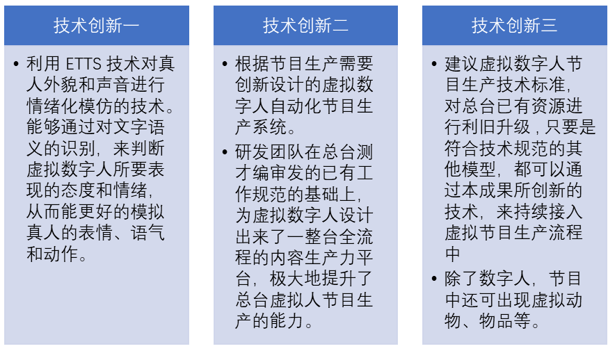央視頻AI 虛擬主持人生產(chǎn)力平臺是央視頻發(fā)揮媒體融合傳播優(yōu)勢、應(yīng)用新技術(shù)新手段的突破性成果。其中最具 代表性的虛擬主播AI 王冠,不僅是中央廣播電視總臺首個超仿真虛擬主播,同時在2022 年應(yīng)用至今,全面賦能總臺 視頻、音頻、圖文的內(nèi)容生產(chǎn),應(yīng)用到總臺多檔節(jié)目中,全年生產(chǎn)內(nèi)容超300 期。