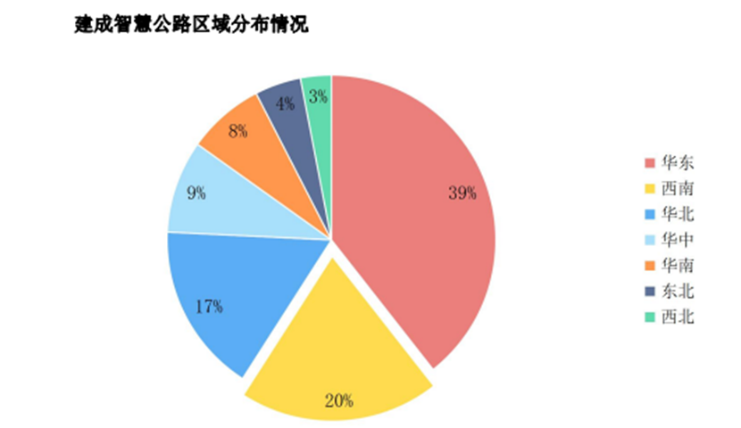 在建和擬建的智慧公路超過40 條,主要集中在西南、華南、華東區(qū)域。其 中西南區(qū)域智慧公路項目集中在云南??;華東區(qū)域集中在浙江省和江蘇?。蝗A南 區(qū)域集中在廣東省。