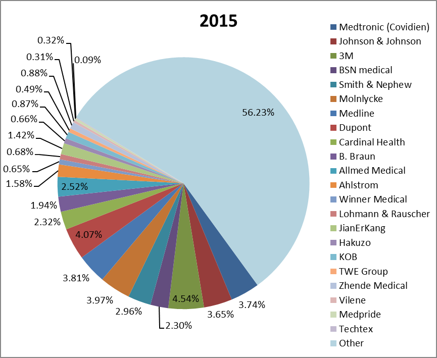 圖2015全球Medical Textiles(醫(yī)用紡織品)主要企業(yè)市場(chǎng)份額(%)(營(yíng)收)