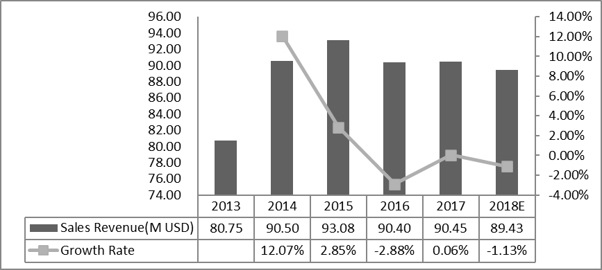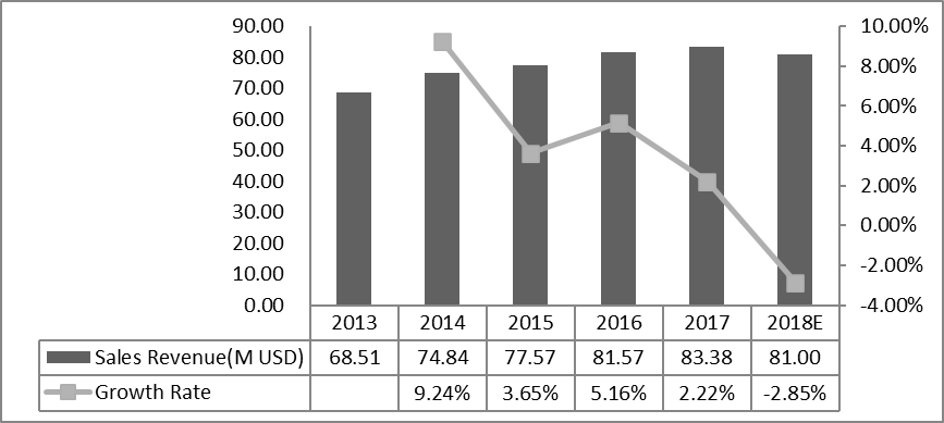 歐洲激光直接成像(LDI)系統(tǒng)收入(百萬美元)和增長(zhǎng)率(2013-2018)