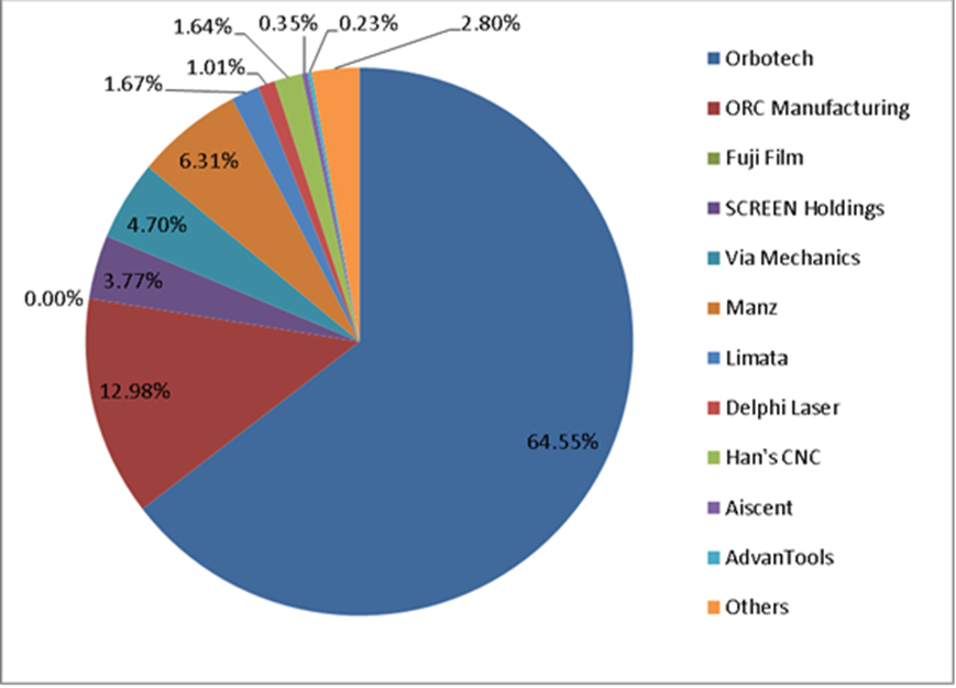 就全球激光直接成像(LDI)系統(tǒng)行業(yè)而言,2017年,排名前11位的制造商占據(jù)了90%以上的銷售市場(chǎng)份額。以色列巨頭奧寶科技(Orbotech)去年占比59%,是激光直接成像(LDI)系統(tǒng)行業(yè)的全球領(lǐng)導(dǎo)者。以下制造商為ORC Manufacturing、SCREEN Holdings、Via Mechanics、Manz和Limata,分別占全球13.06%、3.83%、4.73%、6.98%和1.80%的市場(chǎng)份額。韓數(shù)控是中國(guó)激光直接成像(LDI)系統(tǒng)行業(yè)的全國(guó)領(lǐng)先者。2017年,該公司共銷售992萬美元的激光直接成像(LDI)系統(tǒng)產(chǎn)品。