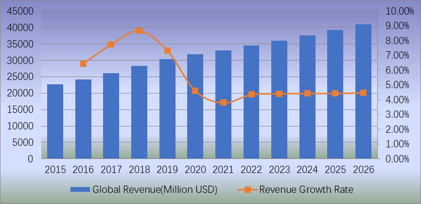 圖:2015-2026年全球Mozzarella奶酪收入(百萬(wàn)美元)