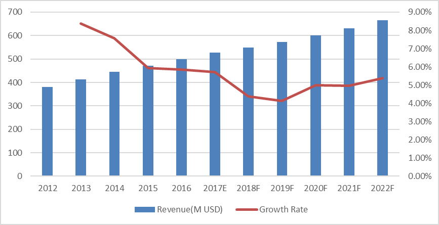 歐洲市場(chǎng)在過(guò)去幾年已經(jīng)成熟并穩(wěn)定發(fā)展,未來(lái)幾年將保持這一趨勢(shì),2016年為18.49億美元,2022年將達(dá)到25.57億美元,2016年至2022年的復(fù)合年增長(zhǎng)率為5.55%。但在時(shí)代的變化中,歐洲也充滿了許多不確定性,包括政治選舉、貿(mào)易政策和歷史問(wèn)題。
