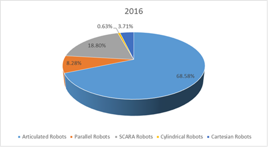 圖:2016年按類型劃分的工業(yè)機(jī)器人收入市場份額(%)
