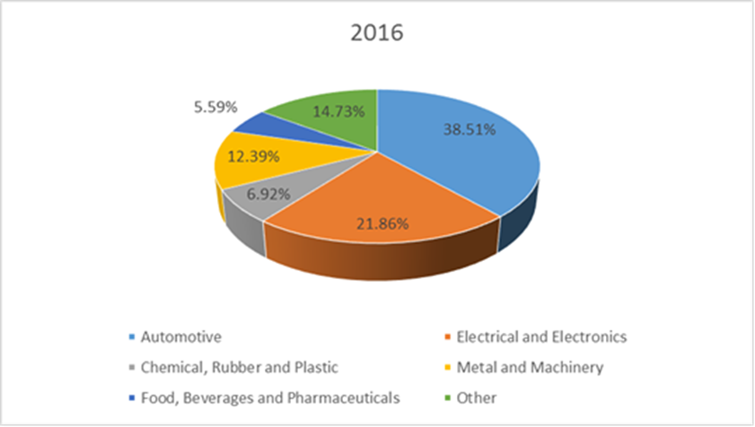 圖:2016年全球工業(yè)機(jī)器人消費(fèi)市場份額(%)(按應(yīng)用劃分)