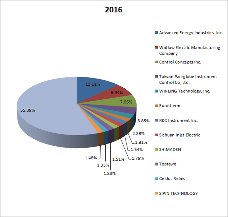 2、先進(jìn)能源工業(yè)股份有限公司、Watlow電氣制造公司占據(jù)市場(chǎng)主導(dǎo)地位,2016年分別占SCR功率控制器產(chǎn)值市場(chǎng)份額的1 21.89%、12.16%。Control Concepts股份有限公司和臺(tái)灣Pan-globe儀器控制公司有限公司是主要參與者,分別占2016年SCR功率控制器總市場(chǎng)份額的7.35%和5.85%。全球巨頭市場(chǎng)主要分布在美國(guó)和亞太地區(qū)。它在這個(gè)領(lǐng)域有著不可動(dòng)搖的地位。