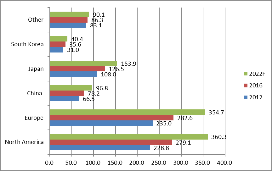 2.在生產(chǎn)市場(chǎng),全球產(chǎn)值從2012年的7.524億美元增至2017年的9.247億美元。