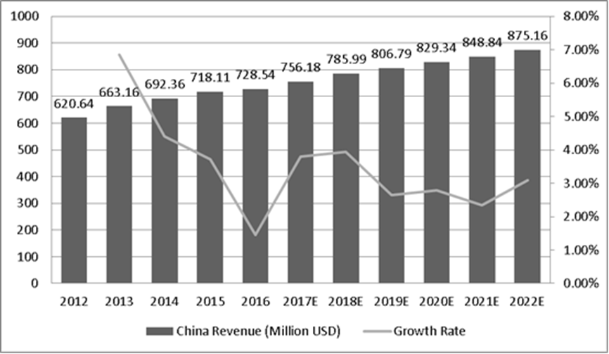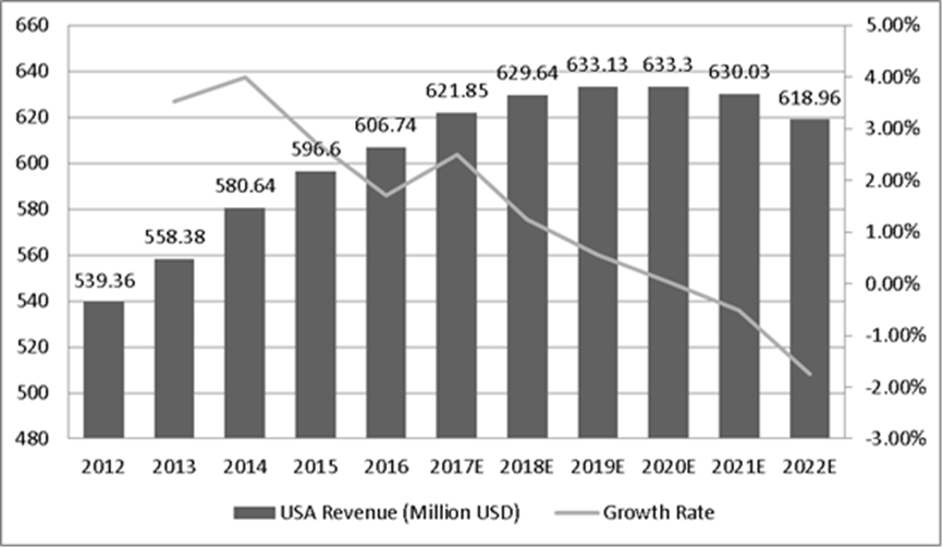 圖:美國Micro SD卡膜收入(百萬美元)和增長率(2013-2018年)