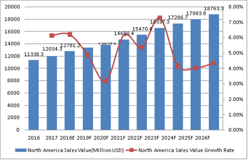 9.2.1 2013-2018年美國銷售收入(百萬美元)和增長率