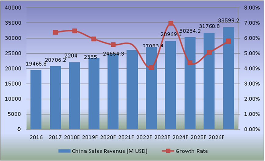 圖:2016-2026年中國鍛造收入(百萬美元)和增長率
