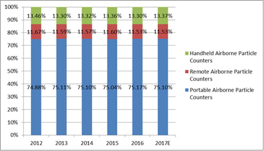 圖:2012-2017年按類型劃分的機(jī)載粒子計(jì)數(shù)器銷售收入份額