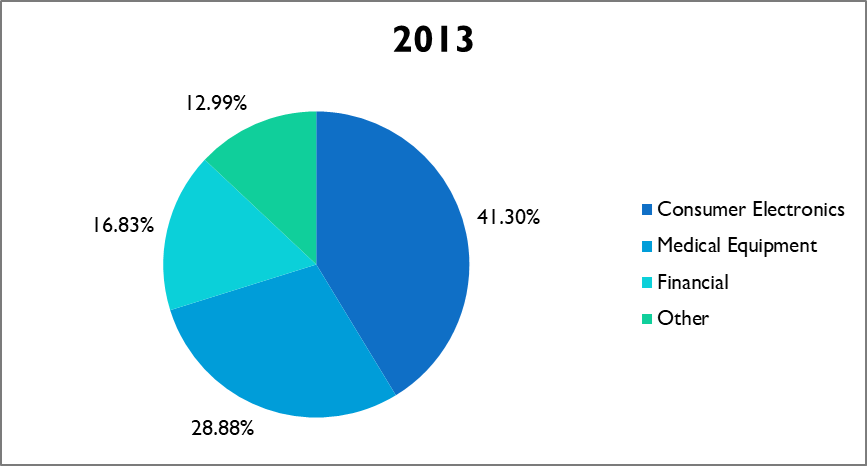 圖:2013年全球液晶顯示器支架市場應用收入份額(%)