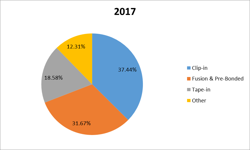 1.2.2 2017年按類型劃分的全球人類頭發(fā)延伸產(chǎn)品市場份額