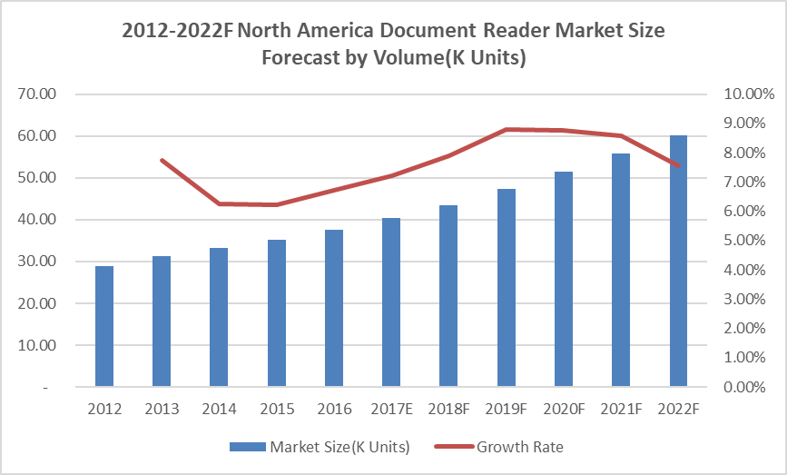 圖:2012-2022F年北美文檔閱讀器市場規(guī)模(按容量(K單位)和增長情況)