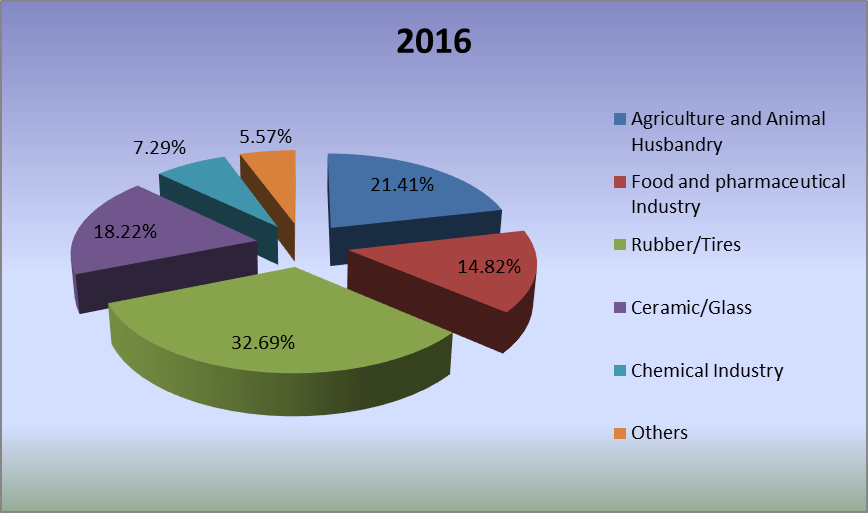 圖:2016年不同應(yīng)用領(lǐng)域市場(chǎng)份額(%)