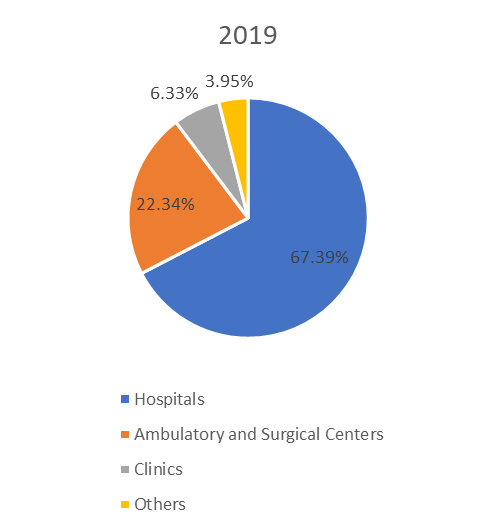 圖:不同應(yīng)用領(lǐng)域收入市場份額(%)(2018)