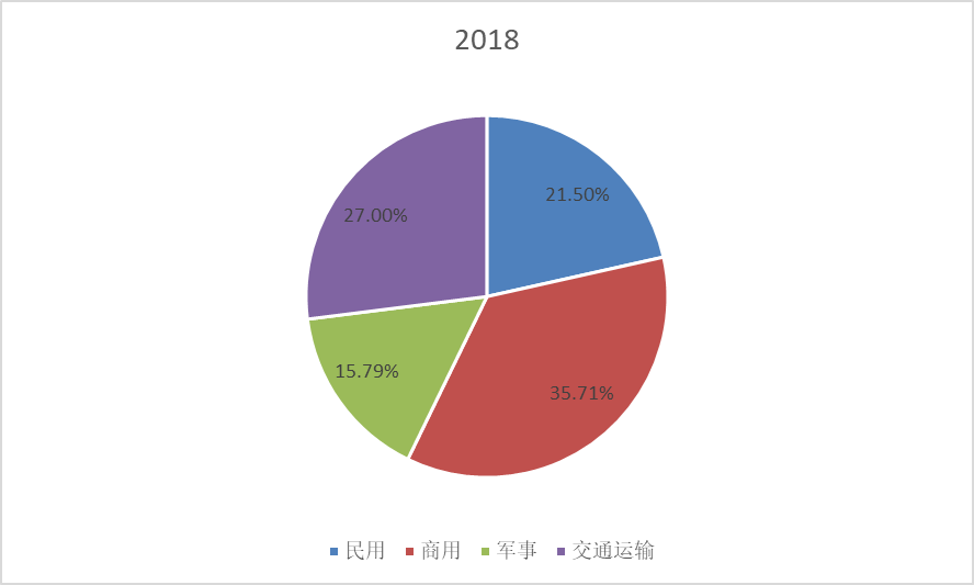 圖:不同應用領(lǐng)域收入市場份額(%)(2018)
