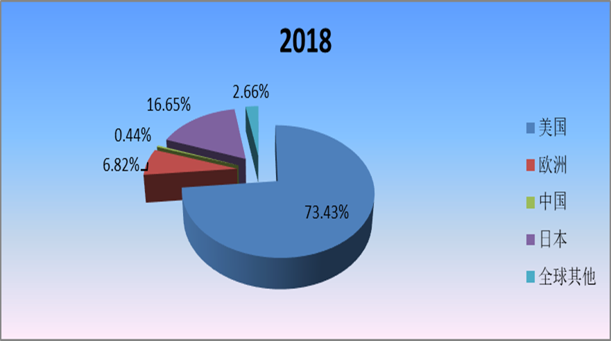 圖:2018年全球主要地區(qū)固體氧化物燃料電池(SOFC)產(chǎn)值市場份額