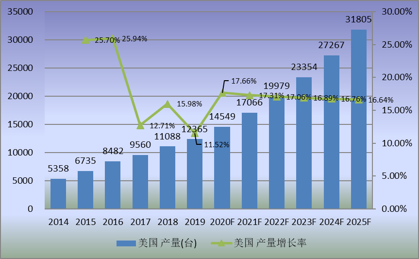 圖:美國市場固體氧化物燃料電池(SOFC)2014-2025年產(chǎn)值及增長率