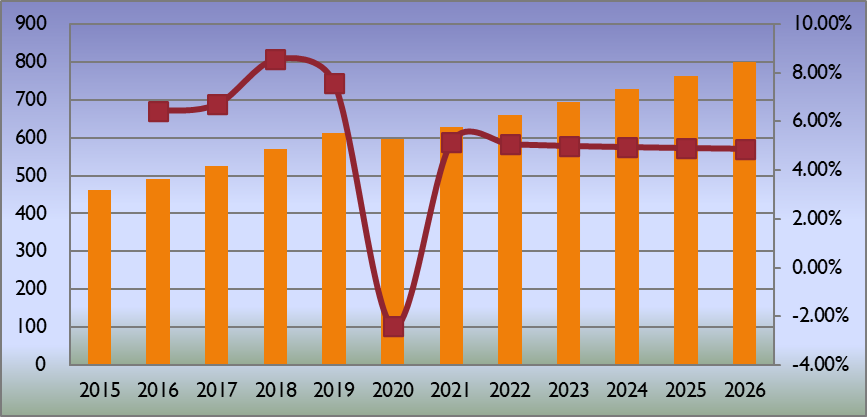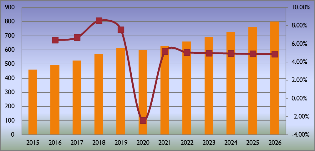 圖:歐洲基于PC的示波器產(chǎn)值(百萬美元)和增長率(2015-2026年)