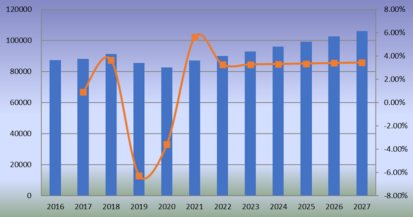 圖:消費(fèi)(MT)和增長率(2016-2027)