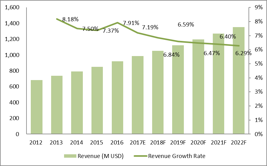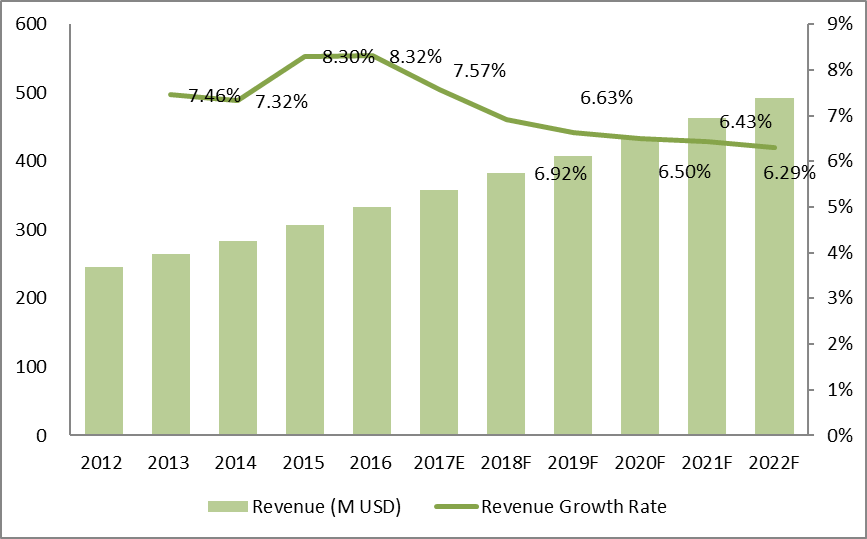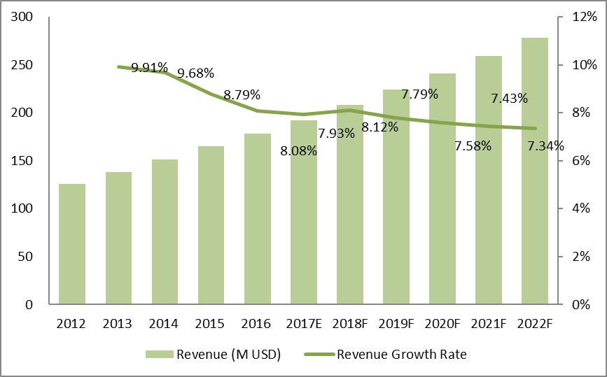 9.14.3達蒙托盤輸送機收入(百萬美元)和毛利率(%)(2012-2017年)