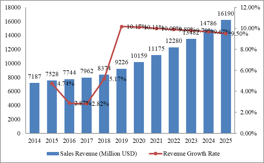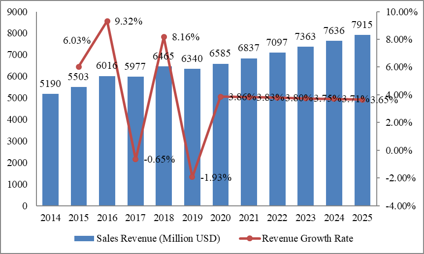 1.5.2歐洲市場冷凍食品收入(百萬美元)和增長率(2014-2025年)