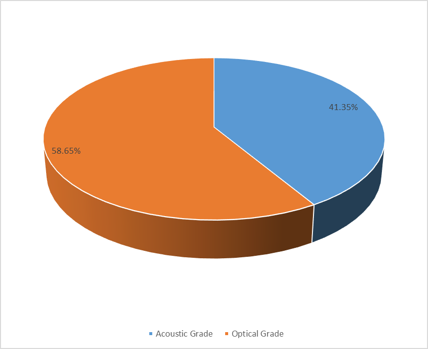 4.目前,LiNbO3晶體主要有兩種類型,包括聲學(xué)級(jí)和光學(xué)級(jí)。光學(xué)級(jí)是LiNbO3晶體的主要類型,2016年光學(xué)級(jí)的銷售收入約為7466萬(wàn)美元,占全球銷售收入的59.98%。