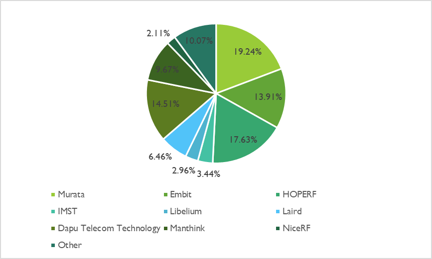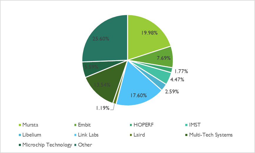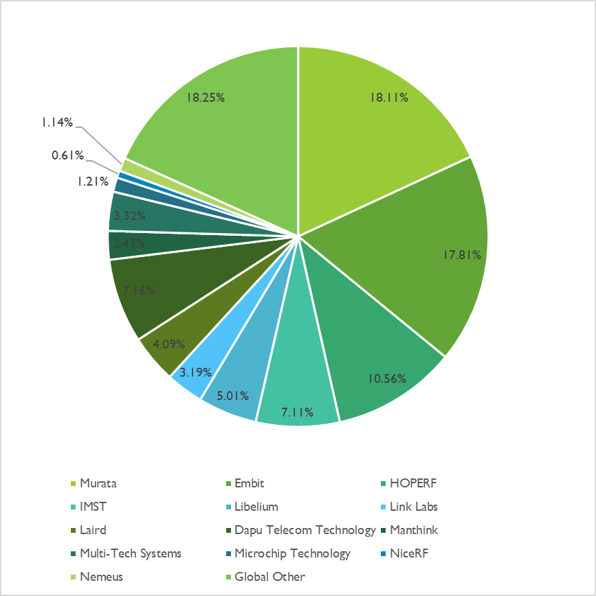 圖:2018年中國LoRaWAN LoRa模塊收入份額
