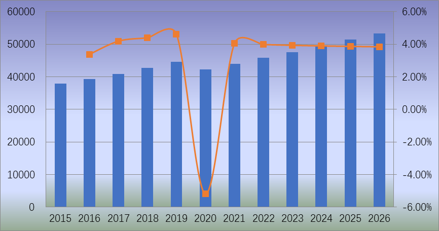 圖:全球耐油涂料收入(百萬美元)和增長率(2015-2026年)