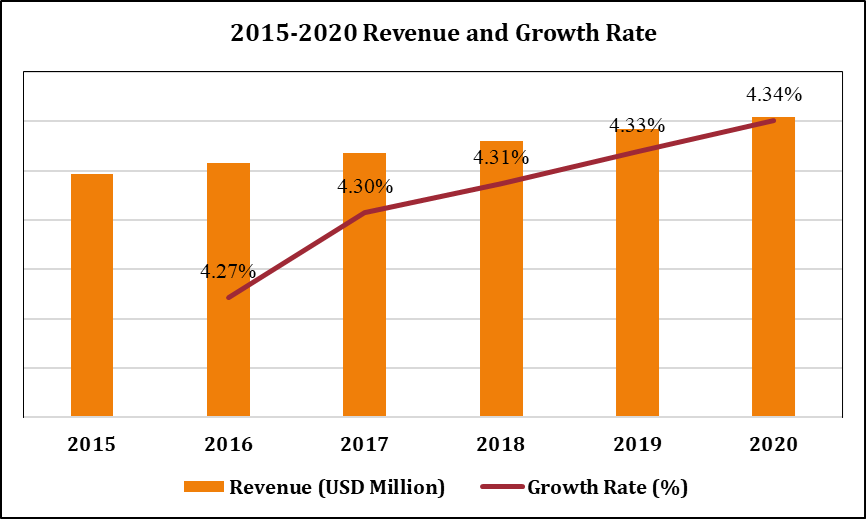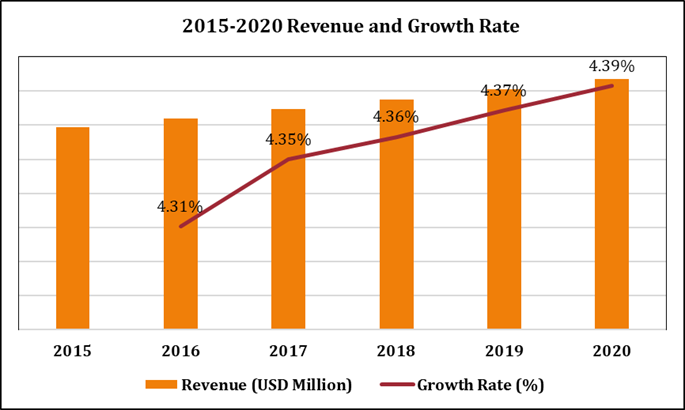 圖:北美市場音樂發(fā)行服務2015-2020年產(chǎn)量及增長率